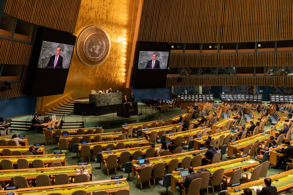 "Aiutare l'Ucraina a proteggersi non è stata soltanto la scelta corretta da compiere. È stata l'unica scelta coerente con gli ideali di giustizia e fratellanza che sono alla base della Carta delle Nazioni Unite”. Mario Draghi parla per la seconda e ultima volta davanti all'Assemblea generale delle Nazioni Unite. Lo fa mentre il mondo attende il discorso di Vladimir Putin, e rivolge un appello alla comunità internazionale a "non dividersi tra Nord e Sud", a rimanere uniti davanti alle provocazioni dello "zar", perché, dice, “ne va del futuro di tutti”.