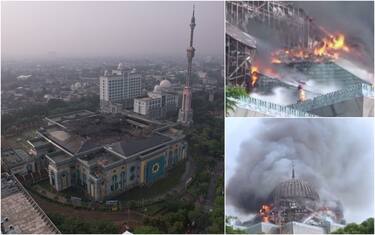 Indonesia, a fuoco una moschea di Jakarta: crolla il tetto della cupola. FOTO