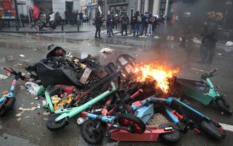 Tifosi del Marocco hanno distrutto l'arredo urbano e appiccato il fuoco ad auto, scooter e monopattini elettrici