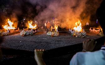 A ottobre, un ex agente di polizia thailandese ha ucciso 36 persone, di cui 24 bambini, durante una sparatoria di massa in un centro di cura per i più piccoli nel nord-est del Paese. L'assassino si è poi suicidato. In foto, la cerimonia di cremazione delle vittime