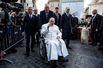 Papa Francesco ha salutato i malati e i disabili, prima di fare il giro tra la folla per il suo congedo e ripartire per il Vaticano