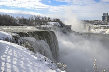 Il freddo polare che sta colpendo l'America settentrionale ha congelato parzialmente le cascate del Niagara, iconica meta turistica famosa in tutto il mondo per gli eccezionali salti d’acqua