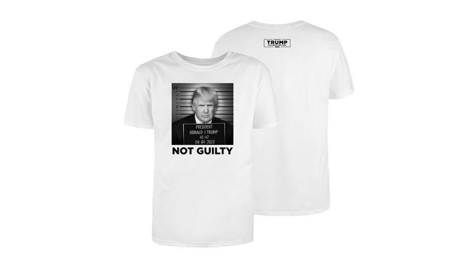 Mentre l'ex inquilino della Casa Bianca veniva chiamato in giudizio, i suoi sostenitori hanno ricevuto una mail di raccolta fondi che promuoveva una maglietta con una falsa foto segnaletica del tycoon