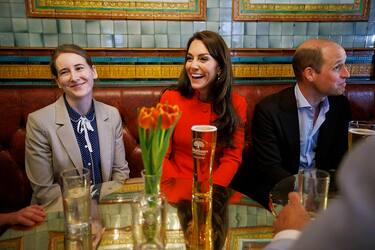 Il Principe e la Principessa del Galles, William e Kate, hanno visitato un pub del centro di Londra, 'Dog and Duck' nel quartiere di Soho. Kate si è presentata con un vestito rosso e ha bevuto una birra insieme al marito dentro il locale