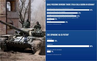 Secondo l'ultima rilevazione Quorum/YouTrend per Sky TG24, oltre la metà degli intervistati reputa che Palazzo Chigi debba perseguire la strada del disimpegno. Il 23% degli italiani è favorevole alla sospensione dell’invio delle armi mentre il 33% sostiene l’assunzione di una posizione direttamente neutrale. Emergono giudizi negativi su Putin, Prigozhin e Zelensky. Per il 45% l’armistizio è l’esito più probabile del conflitto