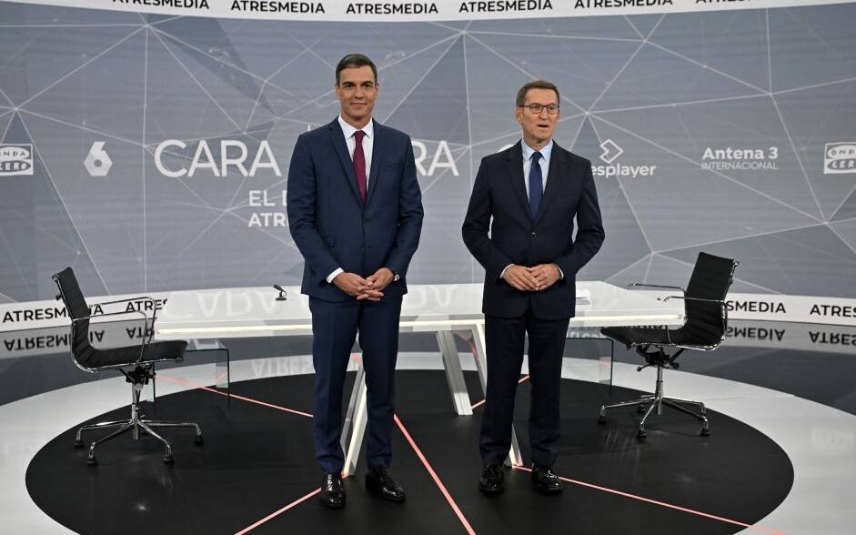Un confronto intenso, senza esclusione di colpi, con scambi di accuse ma senza insulti e senza errori clamorosi o gaffe eclatanti quello andato in scena in Spagna, ieri sera, durante l’attesissimo duello tv tra Pedro Sanchez e Alberto Feijoo. Il premier socialista e il leader del Partido popular si sono confrontati per 100 minuti durante l'unico faccia a faccia previsto prima delle elezioni anticipate del 23 luglio. "Non farò mai come lei, non governerò mai con il braccio politico dell'Eta. La Spagna dirà basta con questo governo amico degli indipendentisti, voglio una maggioranza senza estremisti", ha attaccato Alberto Nunez Feijòo. E Pedro Sanchez ha replicato: "La verità è che volete andare al governo con Vox, un partito contro la Costituzione, estremista di destra, machista. L'Europa è preoccupata da questa prospettiva”.