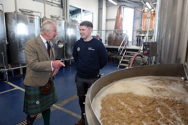 Visita di re Carlo III nelle Highlands scozzesi per l'inaugurazione ufficiale di una distilleria locale, la 8 Doors Distillery