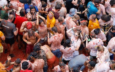 Quasi 150 tonnellate di pomodori sono state lanciate oggi per le strade di Buñol, cittadina in provincia di Valencia, in occasione della famosa festa della Tomatina. La festività si tiene l'ultimo mercoledì di agosto di ogni anno