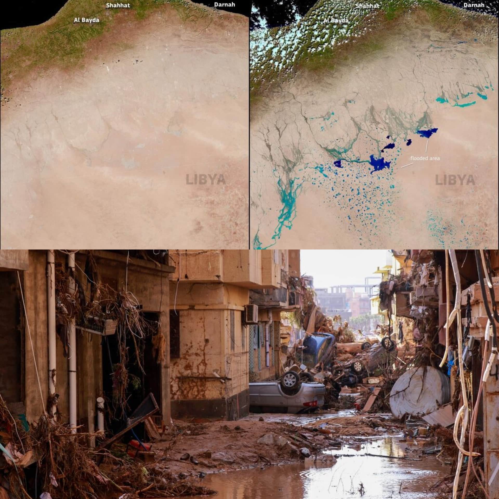 L’alluvione si è trasformata in un’ecatombe: case, veicoli, strade sono stati sommersi e travolti. Si calcola che la violenza di Daniel abbia colpito un quarto di Derna, città in cui vivevano 100mila abitanti. Parlando all'emittente Almasar Tv Othman Abduljalil, ministro della Sanità del governo sostenuto dal Parlamento di Tobruk, ha spiegato: "La situazione a Derna è catastrofica. I corpi giacciono ancora in molti luoghi. Ci sono famiglie ancora bloccate nelle loro case e ci sono vittime sotto le macerie".