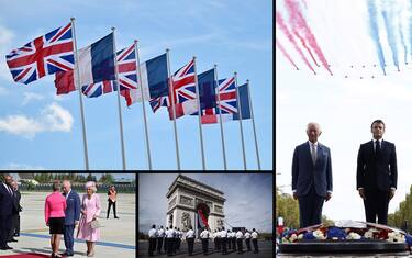 - Sono stati intonati God Save the King e la Marseillaise, gli inni dei due Paesi, poi nel cielo sono sfrecciate la Patrouille de France e le Red Arrows, la pattuglia acrobatica della Royal Air Force