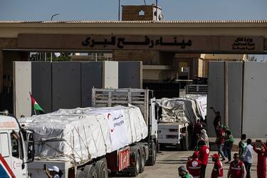- Sono una ventina i camion provenienti dall'Egitto transitati questa mattina dal valico di Rafah, con l'obiettivo di trasportare farmaci e cibo nella striscia di Gaza