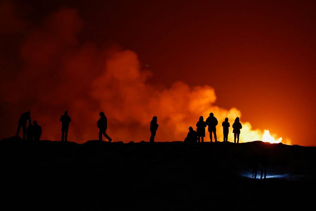Fiumi di lava fuoriescono da una fessura sul fianco della montagna: il vulcano Fagradalsfjall ha iniziato ad eruttare lunedi sera vicino a una piccola città di pescatori nel Sud ovest dell’Islanda. Immagini spettacolari che stanno affascinando il mondo. Il liquido infuocato illumina il cielo di Grindavik.