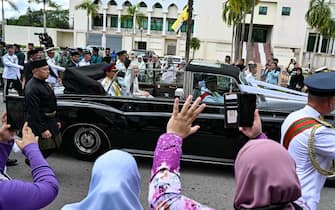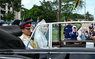- Molti bruneiani si sono riversati per le strade per seguire dal vivo la processione della coppia che ha ricambiato l'affetto salutando il popolo dall'auto