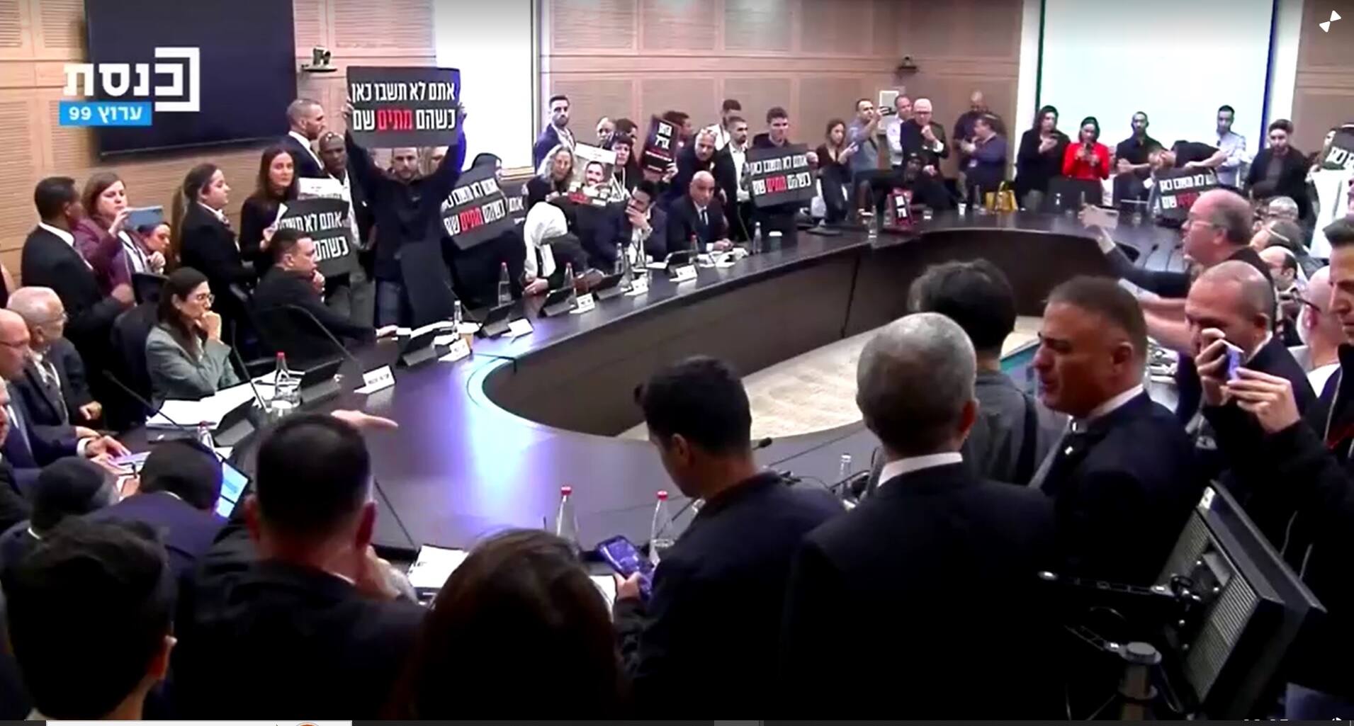 "Ci ascolterete, non c'è più commissione, né Knesset, c'è un solo argomento di cui vi dovete occupare", hanno urlato. "Avete demolito il governo per la vostra agenda, ma non lo fate per la restituzione degli ostaggi", è l'accusa rivolta al presidente della commissione, Moshe Gafni, deputato di United Torah Judaism, facendo riferimento alla battaglia degli ultraortodossi contro i lievitati negli ospedali durante la Pasqua ebraica che l'anno scorso provocò forti tensioni.