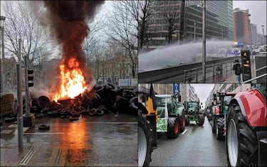 - La protesta è iniziata alle prime luci dell'alba, nel giorno della riunione dei ministri dell'Agricoltura dei 27. Gli agricoltori, arrivati da diversi Paesi d'Europa, protestano di nuovo contro la Politica agricola comune (Pac) e il Green Deal