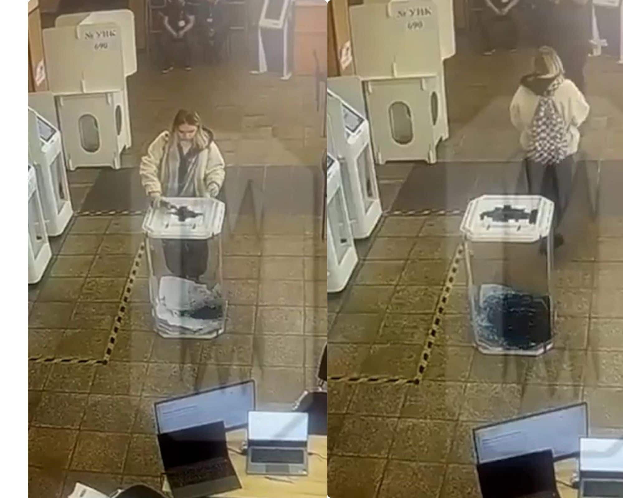 Una donna è stata arrestata in un seggio elettorale a Mosca per aver versato il liquido in un'urna, di fatto sabotando le schede già introdotte dagli elettori. Le telecamere di sorveglianza hanno ripreso il suo gesto e il video postato sui social