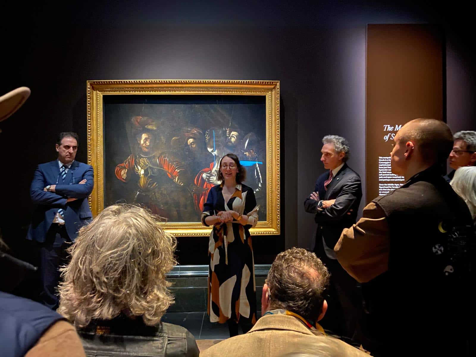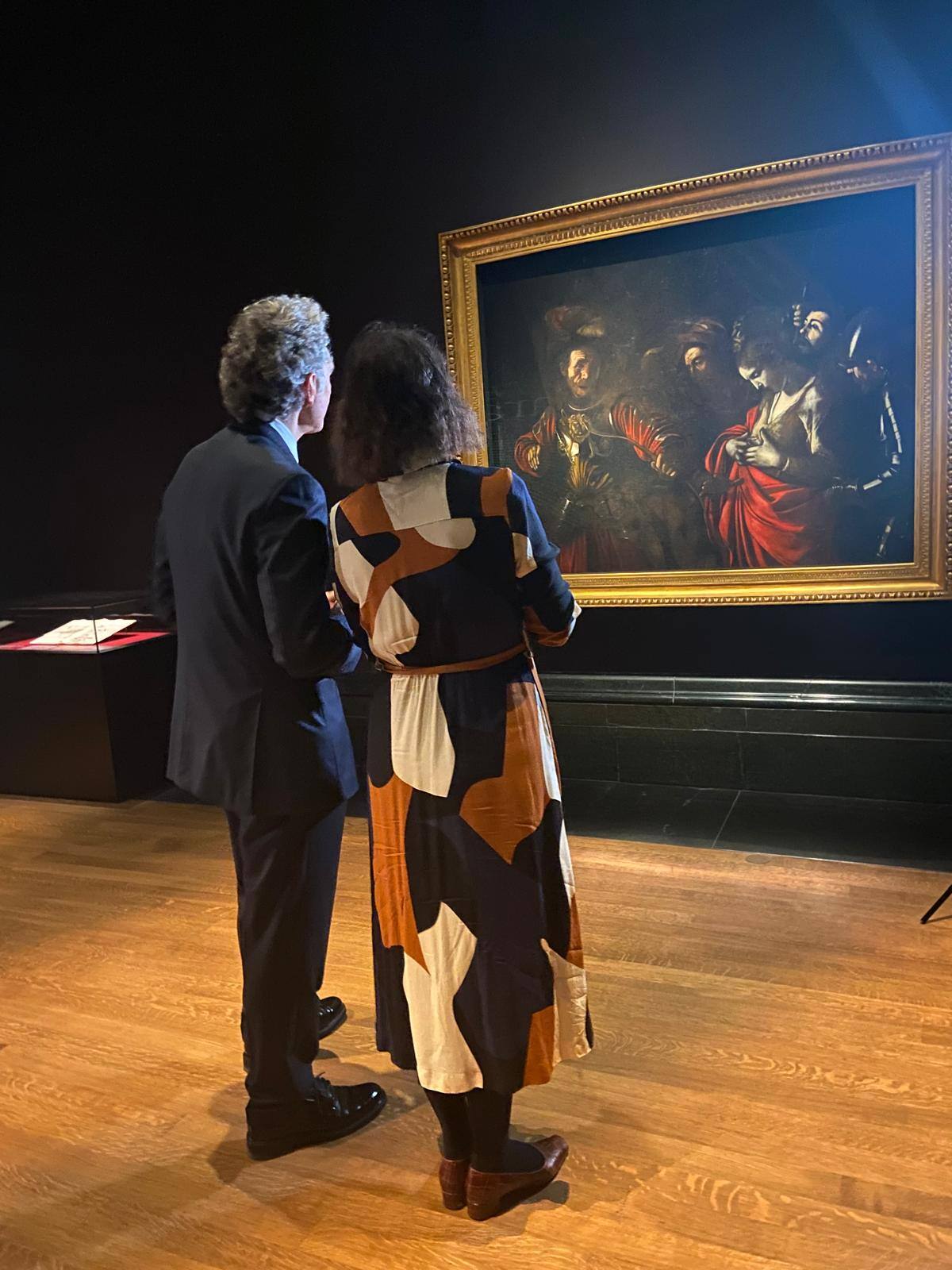 Il direttore Gabriele Finaldi lo ha fortemente voluto e ottenuto in prestito da Banca Intesa, che ne è la legittima proprietaria, come pezzo forte per celebrare i 200 anni del museo. “L’ ultimo quadro di Caravaggio è profondamente toccante e dal tono tragico, e sembra riflettere il travaglio dell'artista, il suo stato mentale turbato e la sua profonda ansia mentre preparava a lasciare Napoli e a tornare a Roma”. Si tratta dell’opera più importante delle 35 mila che compongono la collezione della Banca, normalmente esposta presso il suo museo delle Gallerie d’Italia di Napoli e che fa ritorno nel Regno Unito dopo 20 anni. “La decisione della National Gallery di Londra di celebrare i suoi 200 anni con il Caravaggio delle Gallerie d'Italia è una chiara testimonianza dell'impegno e del ruolo riconosciuto a Intesa Sanpaolo come grande attore culturale, non solo in Italia”, il commento del Direttore Generale di Gallerie di Italia Michele Coppola.