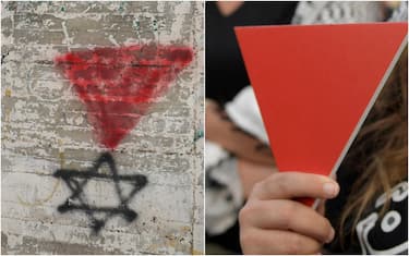 - La Anti-Defamation League (Adl), organizzazione non governativa internazionale ebraica con sede negli Stati Uniti, spiega sul suo sito che il triangolo rosso rovesciato segnala il sostegno al movimento islamico