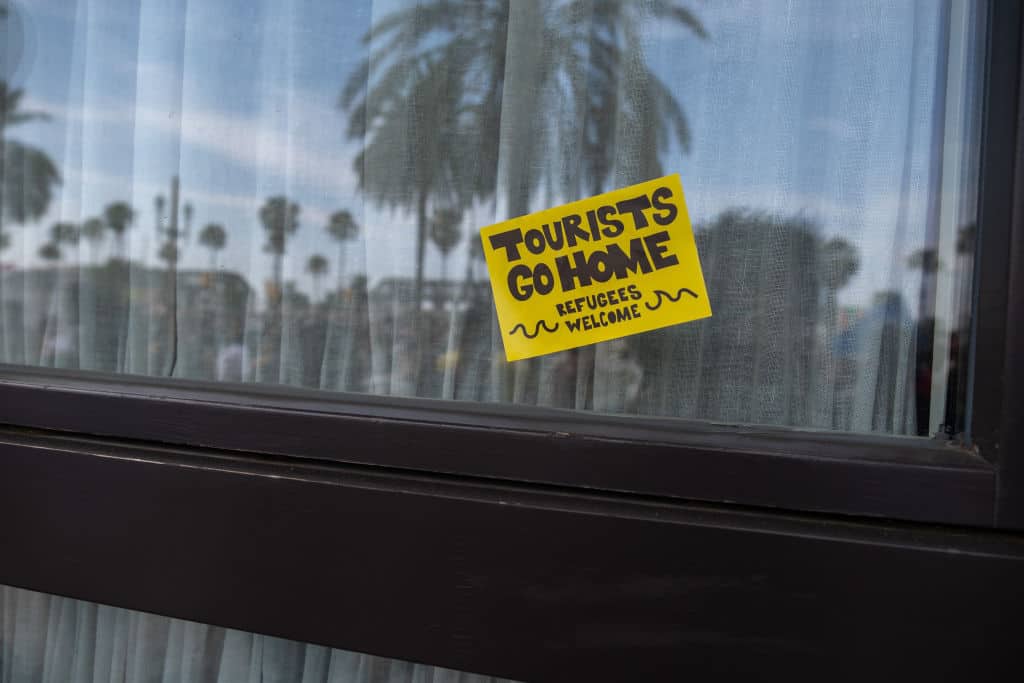 A Barcellona una folla di manifestanti, sabato, ha spruzzato acqua sui turisti seduti nei ristoranti come parte di una protesta contro il sovraffollamento turistico. La manifestazione, che ha visto la partecipazione di circa 2.800 persone, si è svolta nel centro della città e ha avuto come slogan principale “Basta! Mettiamo limiti al turismo”. I manifestanti, molti dei quali portavano cartelli con scritte come “Barcellona non è in vendita” e “Turisti a casa”, hanno marciato lungo un quartiere costiero, fermandosi anche davanti agli ingressi degli hotel e nei punti di ritrovo turistici più popolari.