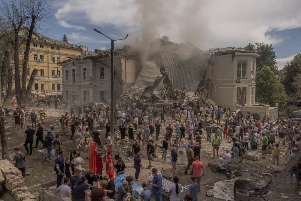 Il bombardamento russo ucraina è avvenuto mentre il presidente Volodymyr Zelensky è atteso a Varsavia, prima di volare poi al vertice della Nato a Washington. Ci sono state esplosioni e si è visto del fumo nero sollevarsi dal centro di Kiev, dove almeno cinque persone sono morte nell'attacco all'ospedale pediatrico, secondo il bilancio diffuso dal ministero dell'Interno. "I terroristi russi hanno attaccato ancora una volta in modo massiccio l'Ucraina con missili. Diverse città: Kiev, Dnipro, Kryvyi Rig, Sloviansk, Kramatorsk", ha detto il leader ucraino, elencando i principali centri civili nel sud e nell'est del Paese presi di mira dalle forze di Mosca. "Più di 40 missili di vario tipo. Edifici residenziali, infrastrutture e un ospedale pediatrico sono stati danneggiati", ha scritto sui social media. Zelensky ha dichiarato che c'è un numero imprecisato di persone intrappolate sotto le macerie dell'ospedale di Okhmatdyt. Secondo i dati ufficiali, solo a Kiev sono almeno otto le persone uccise nel raid.