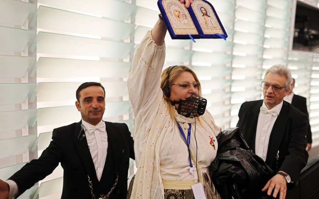 Ha protestato mostrando due icone sacre al grido di “libertà di parola” e “noi crediamo in Dio”. È stata espulsa dall’aula del Parlamento europeo dopo aver interrotto la seduta durante l’intervento di Valerie Hayer, presidente del gruppo dei liberali. La rappresentante del partito di ultradestra romeno Sos Romania, Diana Iovanovici-Sosoaca, ha protestato indossando una museruola. “È la terza volta che interrompe – ha detto la presidente Roberta Metsola - chiedo che venga portata fuori dall'Aula. Penso che lei abbia parlato abbastanza”.