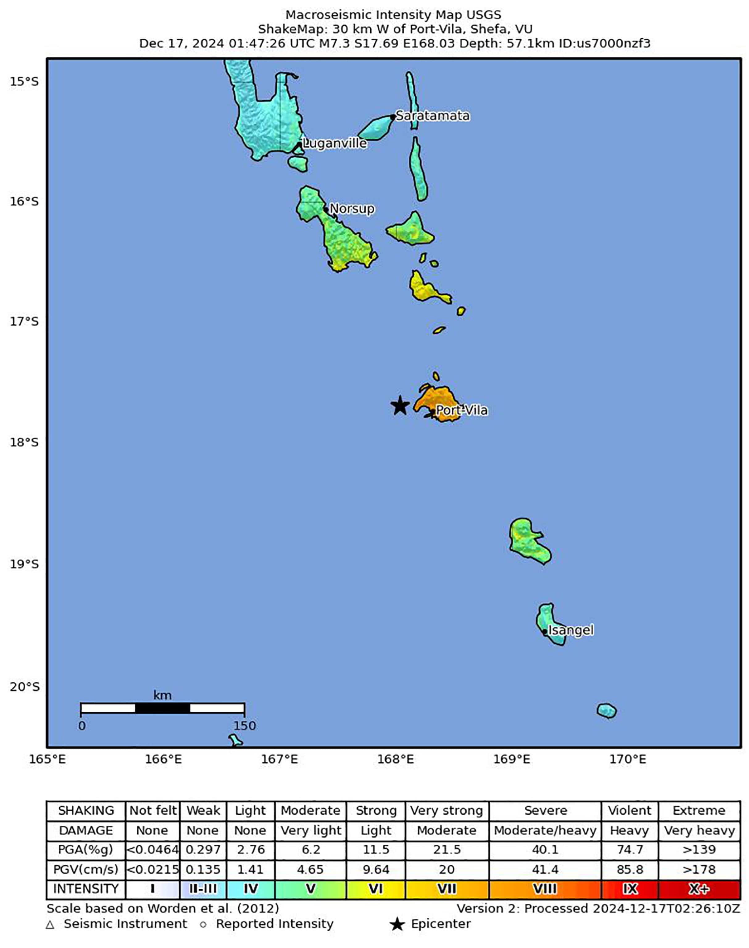 L'epicentro del sisma, seguito da due scosse di assestamento di 5,5 e 5,4, è stato localizzato a circa 30 chilometri a ovest della capitale Port-Vila, secondo il servizio statunitense. Secondo testimoni sarebbero stati individuati corpi di persone travolte dai crolli