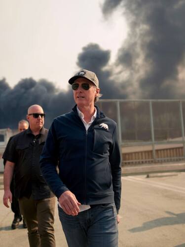 Il governatore della California Newsom nel distretto Pacific Palisades