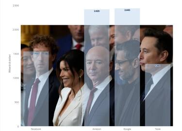 Musk, Zuckerberg, Bezos e Pichai ovvero Tesla, Facebook, Amazon e Google tutti insieme al capezzale del nuovo presidente. Per comprendere meglio lo scatto che ha fatto il giro del mondo abbiamo pensato di corredarlo di dati.
