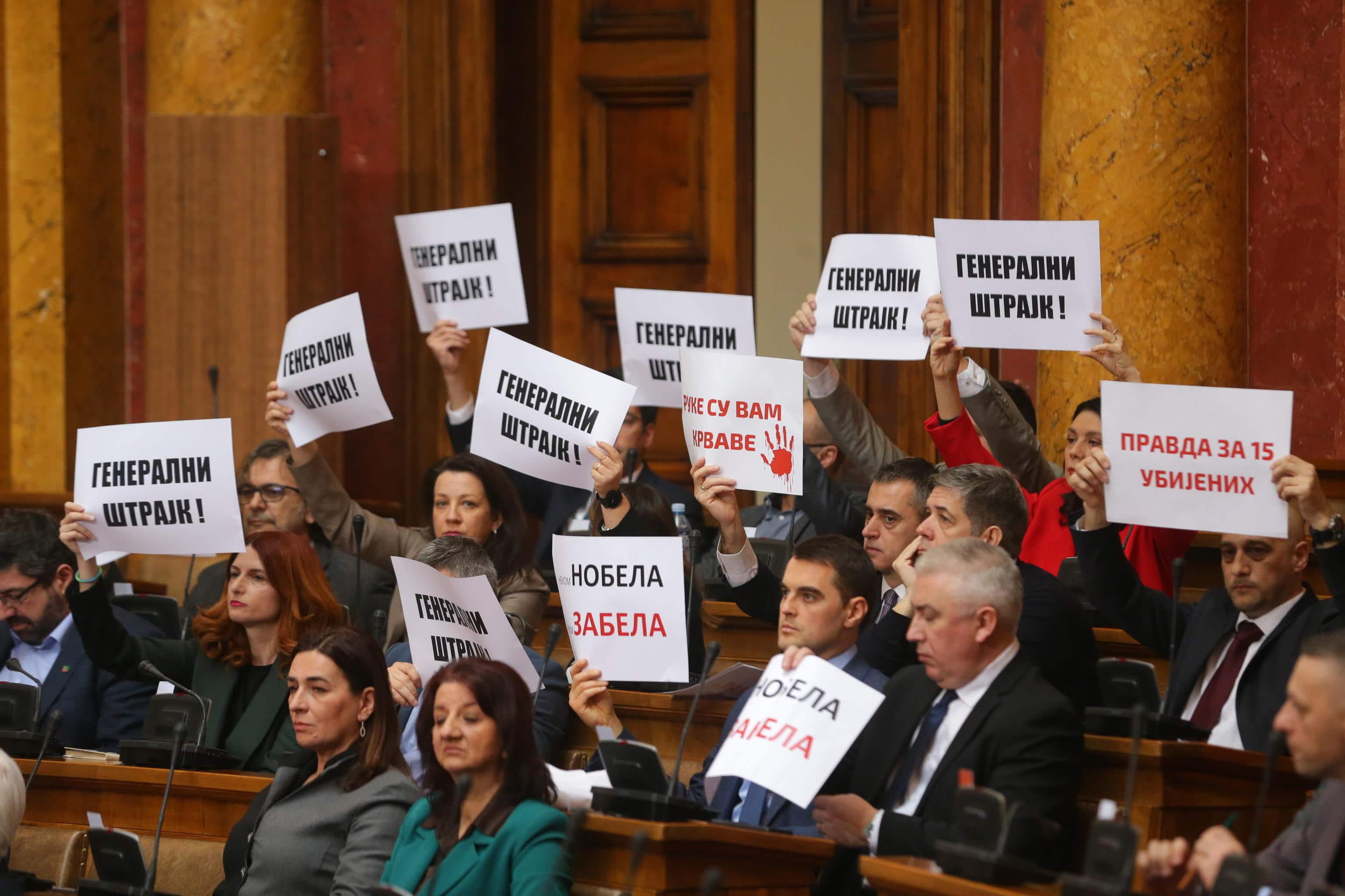 Durante il primo giorno della sessione legislativa, membri dell'opposizione serba hanno acceso razzi e sparato gas lacrimogeni a sostegno delle proteste contro la corruzione. La presidente del Parlamento Ana Brnabic ha risposto: "La vostra rivoluzione è fallita e questo Paese vivrà". Tre deputate sono rimaste ferite nei tumulti, una incinta all'ottavo mese. Manifestazioni di studenti e lavoratori anche fuori il Parlamento