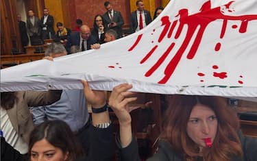 La protesta davanti al parlamento