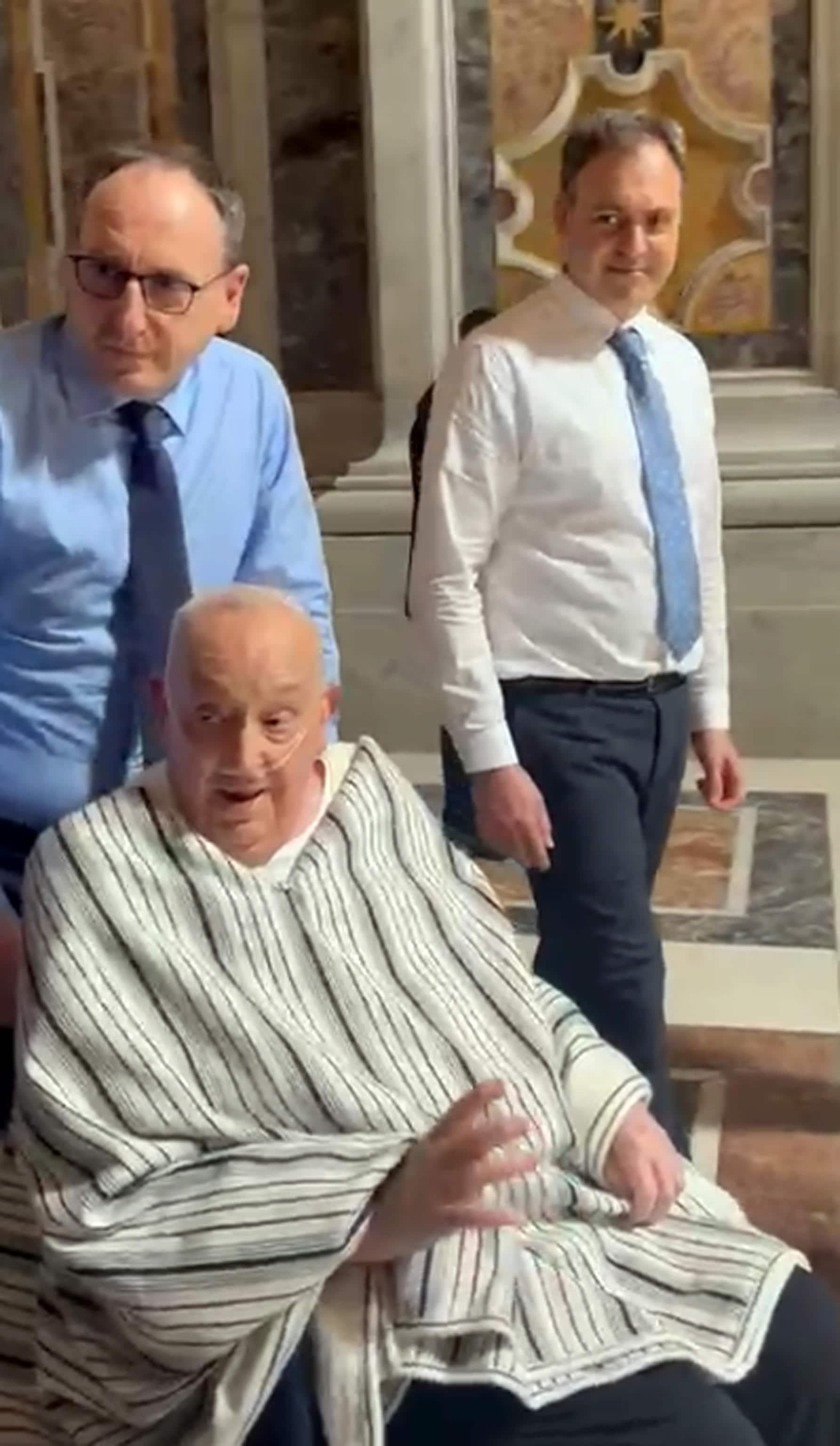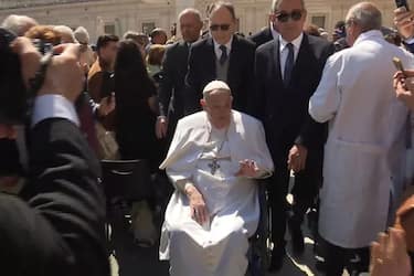 Nonostante sia ancora convalescente, ma in ripresa, dopo i quasi quaranta giorni di ricovero al Policlinico Gemelli, ieri Papa Francesco ha voluto fare una sorpresa. Infatti, ha deciso, senza avvisare nessuno, di andare a vedere di persona il frutto degli ultimi restauri nella basilica di San Pietro che si prepara, come tutte le chiese del mondo, ad accogliere i riti della Settimana Santa. Ha salutato i restauratori, per lo più donne, che apportavano gli ultimi ritocchi prima della presentazione, in programma oggi, della fine dei restauri alla stampa internazionale. Poi si è recato a pregare sulla tomba di San Pio X al quale Papa Francesco è molto devoto. Ma c’è qualcosa di particolare che è balzato agli occhi di qualcuno: il Pontefice non indossava l'abito bianco con la papalina ma, accompagnato dal fedele infermiere Massimiliano Strappetti, è apparso sulla sedia a rotelle ma con una “maglia della salute” bianca ed un particolare poncho grigio sopra i pantaloni neri.