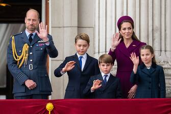 - Sul balcone, come da tradizione, si sono affacciati i vertici di casa Windsor: il 76enne re Carlo III, la regina Camilla e - dietro di loro - i principi di Galles, William e Kate, con i tre figli George, Charlotte e Louis, due dei fratelli del sovrano, la principessa Anna e il principe Edoardo con i rispettivi consorti, nonché il quasi 90enne duca di Kent, cugino della defunta Elisabetta II