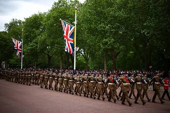 - Il rito del saluto dal balcone ha fatto seguito a una parata solenne animata da circa 1.300 militari britannici e a cui ha partecipato anche un drappello di soldati ucraini: a sottolineare il sostegno di Londra a Kiev nello scenario bellico dell'Europa di oggi segnato dal conflitto in corso da oltre tre anni fra Russia e Ucraina