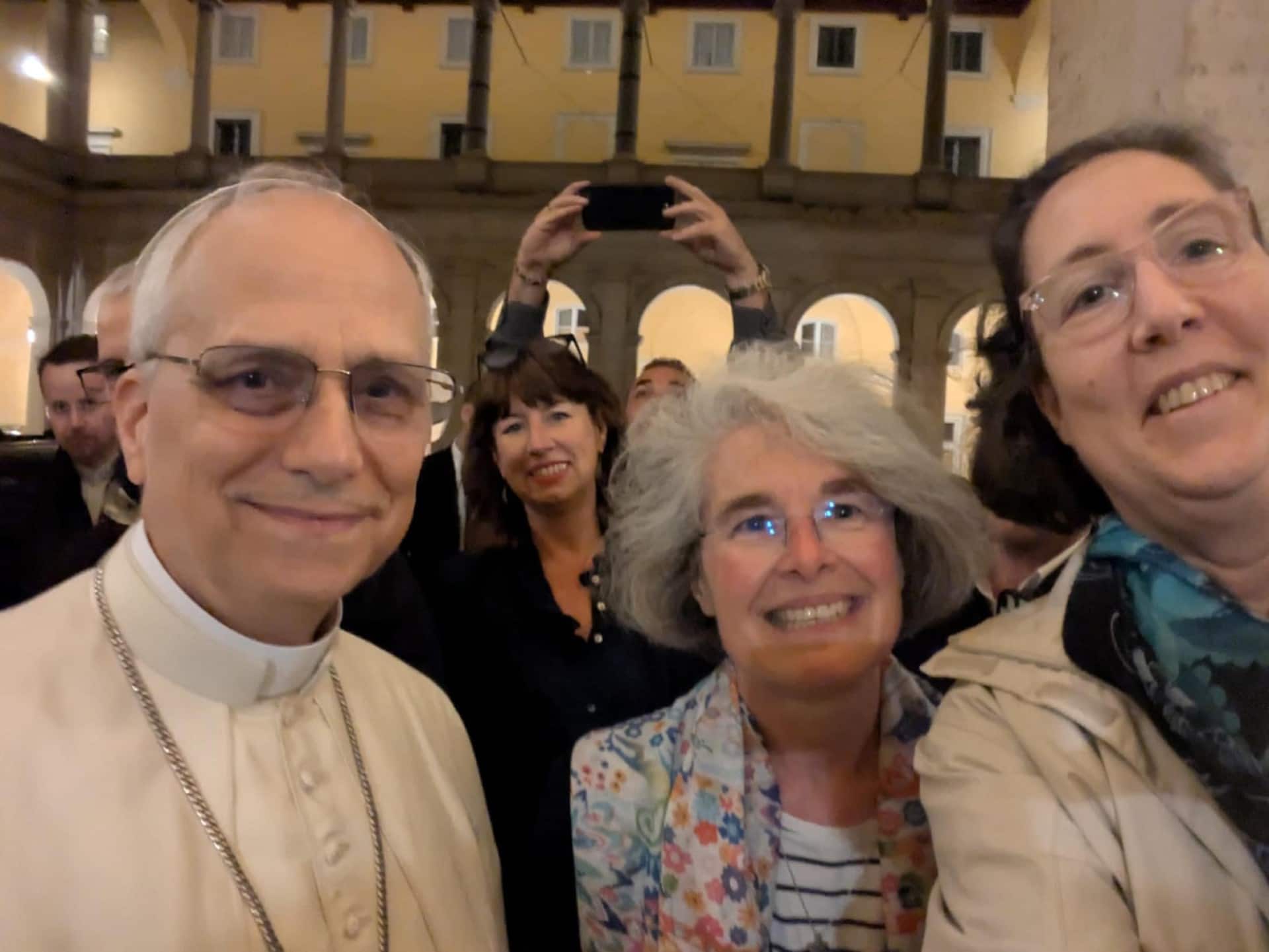 Prima della cena con i cardinali elettori, Prevost è tornato nel luogo dove vive dal 2023, cioè nel Palazzo del Sant'Uffizio. Qui ha incontrato un gruppo di fedeli e con loro ha scattato alcuni selfie, li ha salutati e ha impartito ai presenti una benedizione