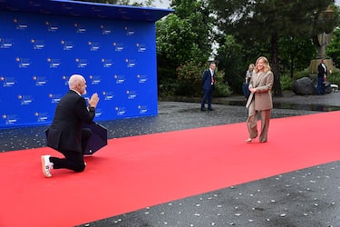 Meloni arriva al summit di Tirana, Edi Rama si inginocchia. VIDEO