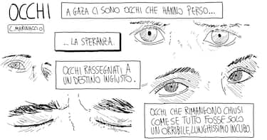 La disperazione di quanto sta avvenendo nella Striscia vista dalla matita di Marinaccio per Sky TG24