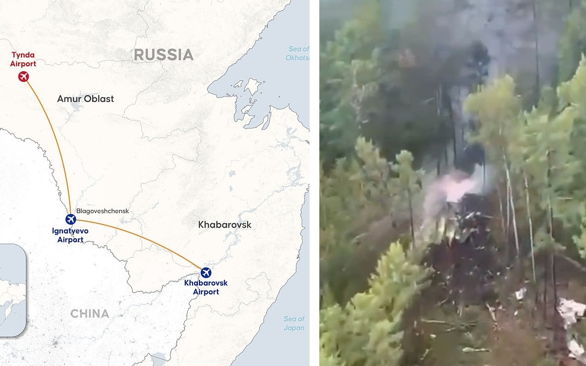 È stato trovato in fiamme e sul pendio di una montagna a una decina di chilometri dalla città russa di Tynda, dove sarebbe dovuto atterrare partendo da Blagovechtchensk