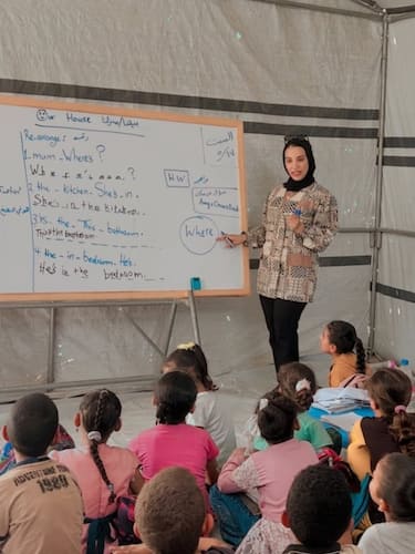 Gaza, la maestra Farida nella scuola-tenda: “Lo studio è un diritto”
