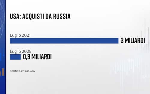 - Per gli Stati Uniti era più semplice tagliare i ponti con la Russia, non essendo dipendenti dalle loro forniture. In ogni caso c’era un interscambio tra i due Paesi, che si è fortissimamente ridotto: se nel luglio 2021 gli acquisti di beni russi da parte di Washington erano pari a 3 miliardi di dollari, nel luglio 2025 questa cifra si è ridotta a 300 milioni