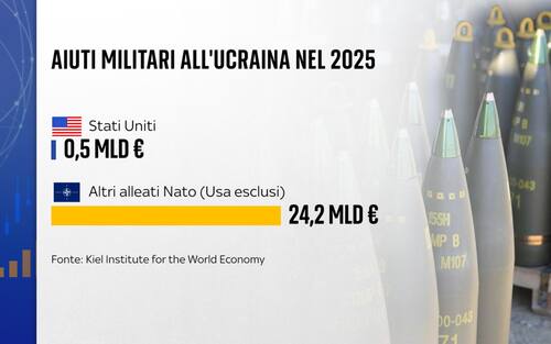 - Uno scenario che è quello che è successo sostanzialmente nel corso degli ultimi mesi del 2025, con gli Stati Uniti che hanno fornito solo 500 milioni di dollari di aiuti a Kiev, mentre tutto il resto è arrivato dall'Europa