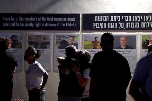 - Anche a Tel Aviv, alla fontana di piazza Dizengoff, in molti hanno deposto fiori vicino alle immagini e ai memoriali delle vittime israeliane dell'attacco del 7 ottobre