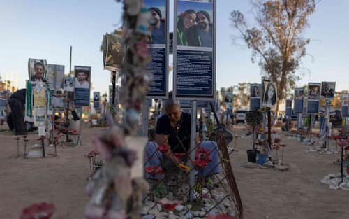 - Bandiere israeliane, candele, foto delle vittime e fiori anche al memoriale delle vittime uccise mentre si trovavano al Nova Music Festival, nel deserto