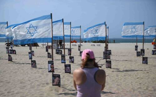 - Bandiere israeliane e nomi delle vittime sono stati posizionati sulla spiaggia di Copacabana a Rio de Janeiro, in Brasile