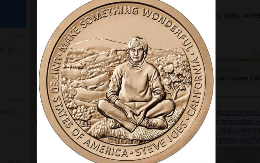 Steve Jobs - California è il nome di una delle nuove monete da un dollaro appena presentata dalla Zecca degli Stati Uniti. La moneta, si legge sul sito ufficiale della United States Mint, raffigura il fondatore di Apple da giovane seduto di fronte a un tipico paesaggio del "Golden State" caratterizzato da dolci colline ricoperte di querce. La sua postura e la sua espressione mostrano come l'ambiente abbia ispirato la sua visione di trasformare una tecnologia complessa in qualcosa di intuitivo e organico come la natura stessa. Le iscrizioni sulla moneta, prosegue la Zecca di Stato, sono "United State of America" e "California". Le altre iscrizioni sono "Steve Jobs" e "Make something wonderful". La designer che ha ideato la moneta è Elana Hagler, lo scultore è l'artista Phebe Hemphill.