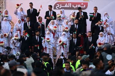 Donne in abito tradizionale e uomini con un completo elegante: così 54 coppie sono convolate a nozze a Khan Younis, tra le macerie della Striscia. Un timido segnale di normalità in uno scenario di guerra e devastazione.. "Nonostante tutto ciò che è accaduto, inizieremo una nuova vita", ha detto uno di loro. Centinaia le persone che hanno assistito alla cerimonia
