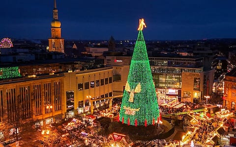 - Una vista aerea del tradizionale albero di Natale di Dortmund, alto 45 metri, uno dei più grandi al mondo