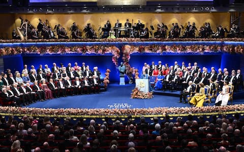 - In foto, una panoramica della cerimonia del 2025 per i Premi Nobel a Stoccolma.