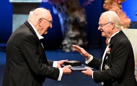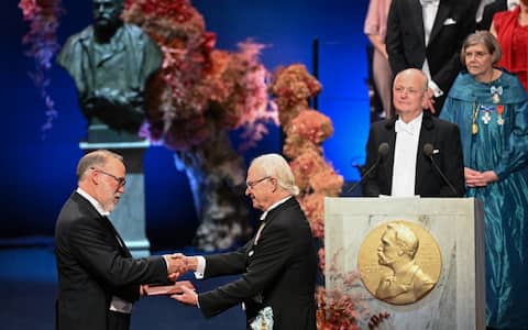- In foto, il re di Svezia Carlo XVI Gustavo consegna al chimico britannico e australiano Richard Robson il Premio Nobel 2025.