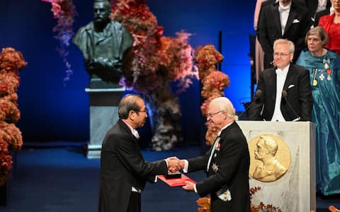 - A Stoccolma sono stati consegnati anche i riconoscimenti per la Chimica: in foto il re di Svezia Carlo XVI Gustavo consegna al chimico giapponese Susumu Kitagawa il Premio Nobel 2025.