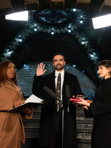 Il sindaco ha giurato sul Corano nella stazione dismessa della metropolitana di City Hall. Un luogo simbolico per dare il via a un mandato ricco di sfide ai limiti del possibile, per mantenere fede alle promesse e conservare l'entusiasmo dei suoi elettori